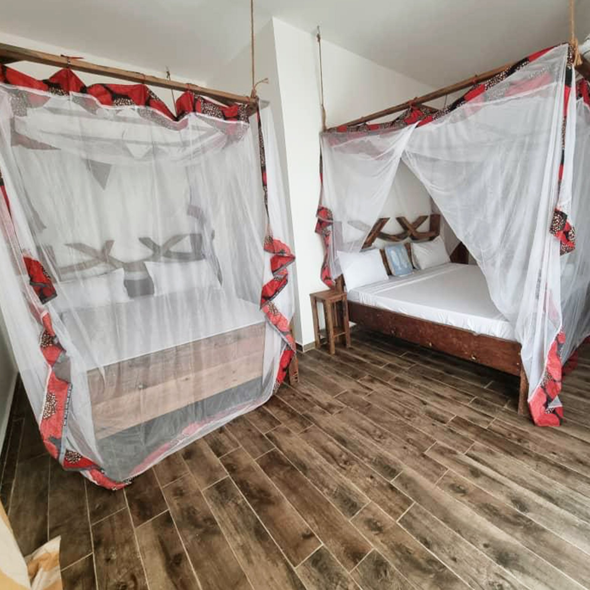 - One small double bed and one large double bed